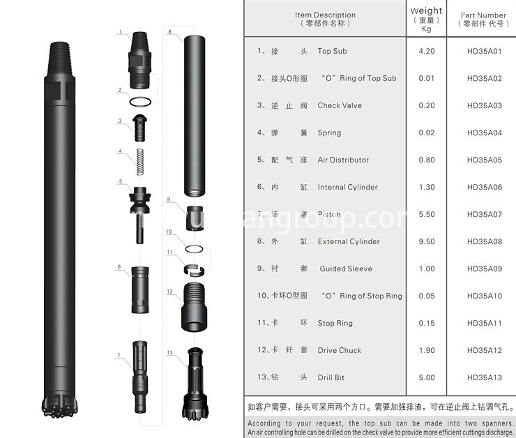 35A高風壓潛孔沖擊器